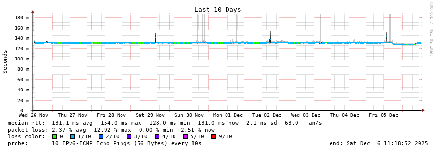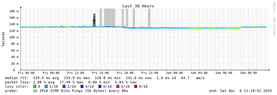 traceroute to 2c0f:5400:2:15::1 (2c0f:5400:2:15::1), 30 hops max, 80 byte packets - Generated at 2025-12-06 11:00:01