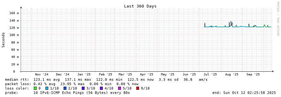 traceroute to 2a05:9f04:16:10::65 (2a05:9f04:16:10::65), 30 hops max, 80 byte packets - Generated at 2025-10-12 01:15:01