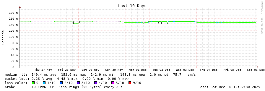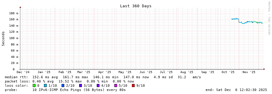 traceroute to 2a04:9dc0:0:a51::afaf:1 (2a04:9dc0:0:a51::afaf:1), 30 hops max, 80 byte packets - Generated at 2025-12-06 11:45:01