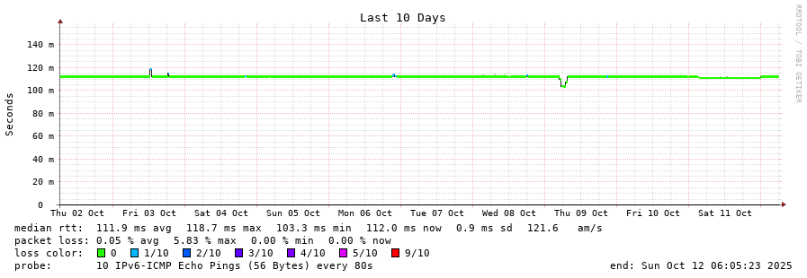 12 > 2001:978:2:24::21 (2001:978:2:24::21) [AS174] 109.052ms 109.000ms 109.325ms