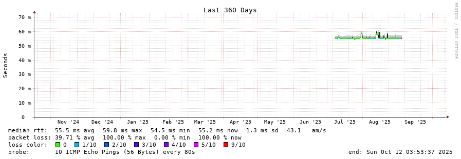 traceroute to 23.237.0.1 (23.237.0.1), 30 hops max, 60 byte packets - Generated at 2025-10-12 00:45:02